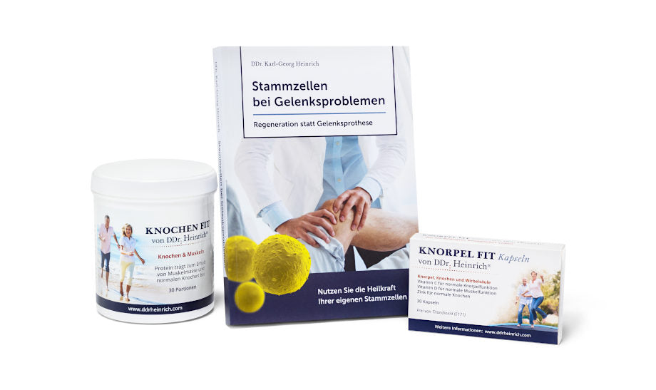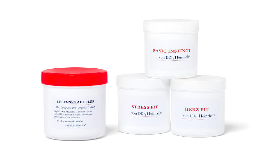 Ergänzende therapiebegleitende oder vorbeugende Maßnahmen können entscheidend dazu beitragen, den Körper möglichst lange gesund und fit zu erhalten. Daher hat DDr. Heinrich spezielle Produkte rezeptiert, die gezielt bei jenen Problemen helfen sollen, unter denen seine Patientinnen und Patienten am häufigsten leiden.